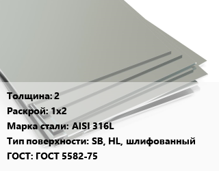 Лист нержавеющий 2 1х2 Сталь: AISI 316L Тип:SB, HL, шлифованный ГОСТ 5582-75, шт, в пленке цена от 9 537 Р / т, где купить, условия доставки в Могилеве и Могилёвской области