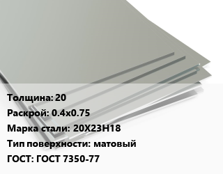 Лист нержавеющий 20 0.4х0.75 Сталь: 20Х23Н18 Тип:матовый ГОСТ 7350-77