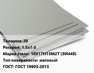 Лист нержавеющий 20 1.5х1-5 Сталь: 10Х17Н13М2Т (ЭИ448) Тип:матовый ГОСТ 19903-2015