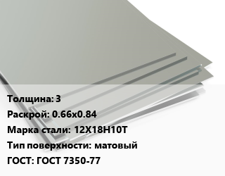 Лист нержавеющий 3 0.66х0.84 Сталь: 12Х18Н10Т Тип:матовый ГОСТ 7350-77