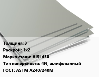 Лист нержавеющий 3 1х2 Сталь: AISI 430 Тип:4N, шлифованный ASTM А240/240М, шт, в пленке цена от 9 116 Р / т, где купить, условия доставки в Могилеве и Могилёвской области