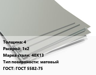 Лист нержавеющий 4 1х2 Сталь: 40Х13 Тип:матовый ГОСТ 5582-75
