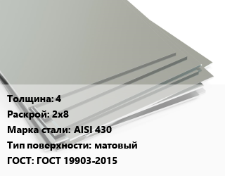 Лист нержавеющий 4 2х8 Сталь: AISI 430 Тип:матовый ГОСТ 19903-2015