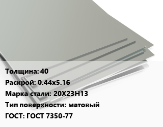 Лист нержавеющий 40 0.44х5.16 Сталь: 20Х23Н13 Тип:матовый ГОСТ 7350-77