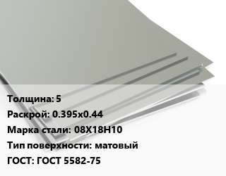 Лист нержавеющий 5 0.395х0.44 Сталь: 08Х18Н10 Тип:матовый ГОСТ 5582-75