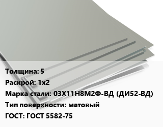 Лист нержавеющий 5 1х2 Сталь: 03Х11Н8М2Ф-ВД (ДИ52-ВД) Тип:матовый ГОСТ 5582-75 цена от 465 251 Р / т, где купить, условия доставки в Могилеве и Могилёвской области