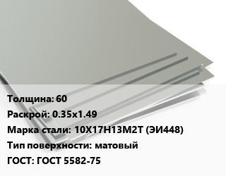Лист нержавеющий 60 0.35х1.49 Сталь: 10Х17Н13М2Т (ЭИ448) Тип:матовый ГОСТ 5582-75