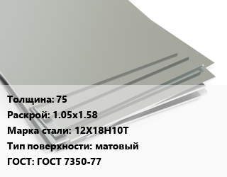 Лист нержавеющий 75 1.05х1.58 Сталь: 12Х18Н10Т Тип:матовый ГОСТ 7350-77