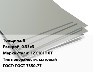 Лист нержавеющий 8 0.33х3 Сталь: 12Х18Н10Т Тип:матовый ГОСТ 7350-77