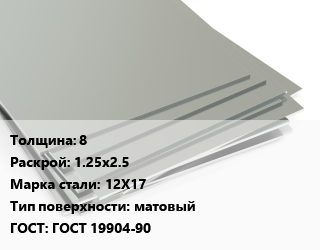 Лист нержавеющий 8 1.25х2.5 Сталь: 12Х17 Тип:матовый ГОСТ 19904-90