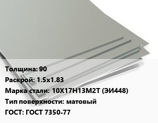 Лист нержавеющий 90 1.5х1.83 Сталь: 10Х17Н13М2Т (ЭИ448) Тип:матовый ГОСТ 7350-77