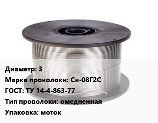 Проволока сварочная 3 Сталь: Св-08Г2С ГОСТ: ТУ 14-4-863-77 омедненная моток