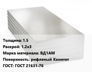 Алюминиевый лист 1.5 1.2х3 Марка: ВД1АМ рифленый Квинтет ГОСТ: ГОСТ 21631-76, шт цена от 7 765 Р / т, где купить, условия доставки в Могилеве и Могилёвской области