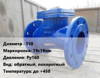 Клапан стальной 150 19с19нж Ру160 обратный, поворотный до +450, фланцевый, шт цена от 22 202 Р / шт, где купить, условия доставки в Могилеве и Могилёвской области