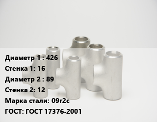 Тройник стальной 426х16 -89х12 Сталь: 09г2с ГОСТ: ГОСТ 17376-2001