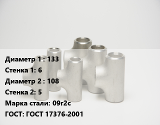 Тройник стальной 133х6 -108х5 Сталь: 09г2с ГОСТ: ГОСТ 17376-2001